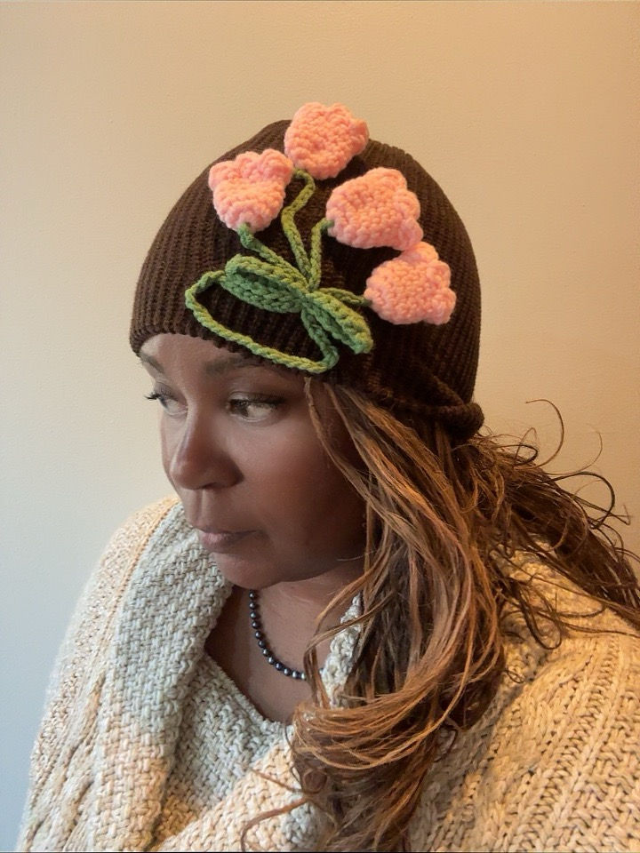 Anvaya Feats - Knit Hat (Pink with Tulips)